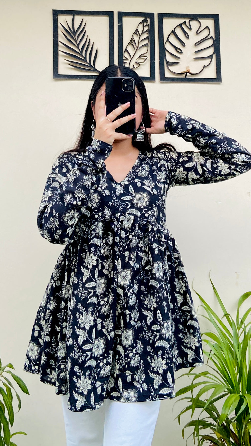 A cotton peplum top is a stylish and feminine top featuring a fitted bodice that flares out at the waist, creating a flattering silhouette. Made from soft, breathable cotton, it offers all-day comfort and is perfect for both casual and dressy occasions. Pair it with jeans, skirts, or tailored pants for an effortlessly chic look.