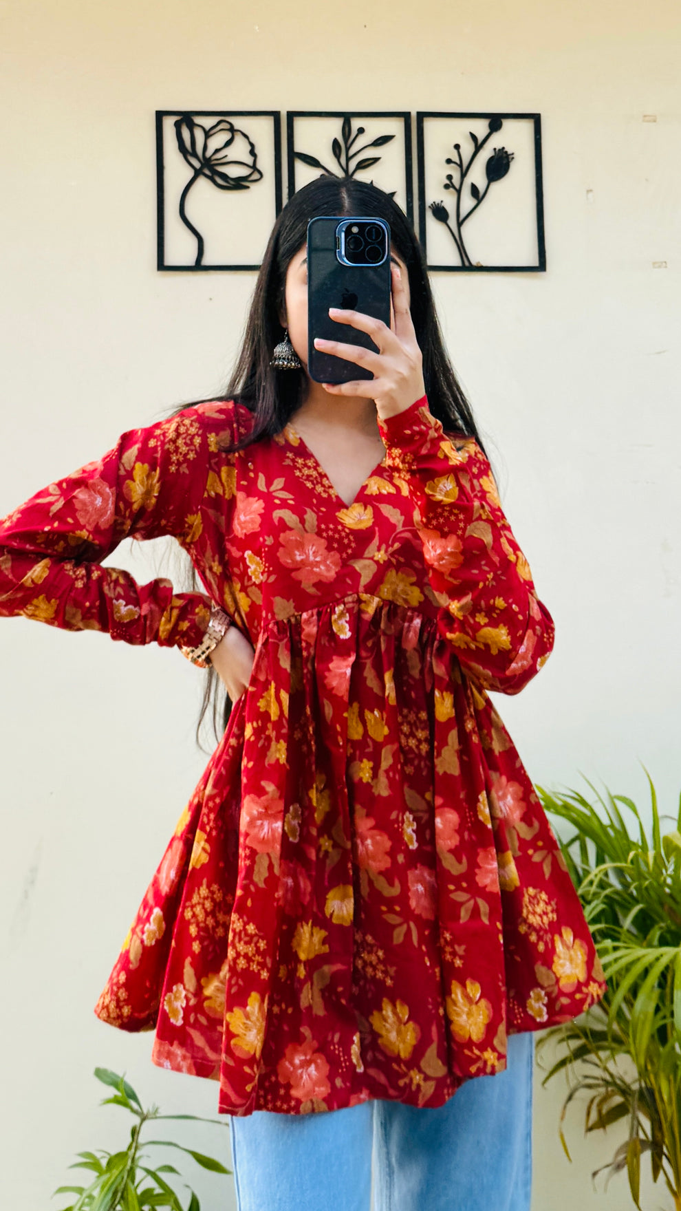 A cotton peplum top is a stylish and feminine top featuring a fitted bodice that flares out at the waist, creating a flattering silhouette. Made from soft, breathable cotton, it offers all-day comfort and is perfect for both casual and dressy occasions. Pair it with jeans, skirts, or tailored pants for an effortlessly chic look.